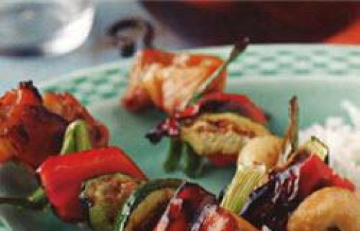 Ingrediënten Porties : 4 450 g kipkarbonades, ontbeend, in stukjes van 2½ cm 1¼ dl teriyakisaus (flesje) 1 courgette (150 g), overlangs in vieren gesneden, in plakjes van 1 cm 1 grote rode paprika, zonder de zaadjes, in ruitjes van 2½ cm 4 bosuitjes, alleen het wit, door [...]