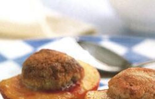 Ingrediënten Porties : 6 120 g amandelpoeder 100 g amarettikoekjes, verkruimeld 3 eetl. fijne witte suiker 2 eierdooiers of 1 heel ei, losgeroerd 6 perziken (bij voorkeur geen pitklevers), ontveld 2 theel. plantaardige olie 30 g boter 1½ dl marsala Bereidi [...]