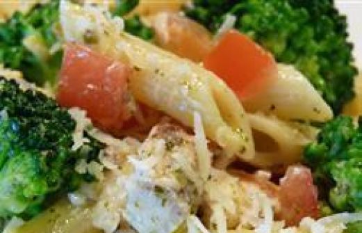 Ingrediënten Porties : 6 340 gr penne pasta 225 gr verse broccoliroosjes 60 ml olijfolie 1 eetlepel fijngehakte knoflook 2 eetlepels pesto 180 gr in kleine stukjes gesneden tomaat 60 gr Parmezaanse kaas 450 gr kipfilet, gekookt en kleingesneden zout naar sm [...]