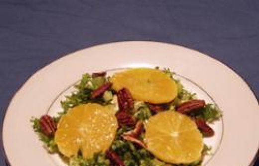 Ingrediënten Porties : 4 50 gr hele pecannoten 1 eetlepel ahornsiroop 1 kleine krulandijvie, fijn gesneden 2 sinaasappels 3 eetlepels extra vierge olijfolie 1 eetlepel witte wijnazijn 1 eetlepel sinaasappelsap zout en versgemalen zwarte peper naar smaak 50 [...]
