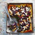 Bron: ah.nlIngrediënten 4 rode uien 500 g gekookte rode bieten 4 el olijfolie 10 plakjes bladerdeeg (pakje, diepvries, ontdooid) 450 g boerenkool (pak, diepvries,[...]